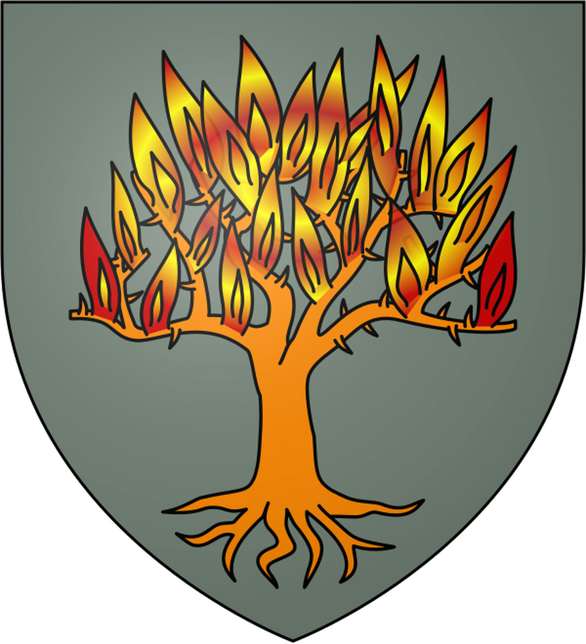 Marbrand Hanesi'nin arması. Duman rengi üzerinde turuncu renkli yanan bir ağaç.